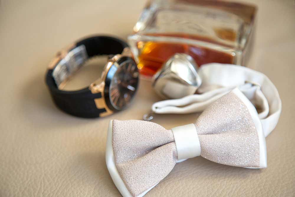 Très peu et surtout aucune bague. Seule l’alliance devra briller au doit du marié une fois la cérémonie de mariage célébrée. La montre, étant un vrai bijou masculin, peut rester au poignet, quoiqu’elle ne sera pas vraiment visible avec les poignets de chemise. Par contre, ces derniers devront d’office arborer des boutons de manchette, classique sur une tenue sobre, en acier doré ou argenté selon les goûts du marié ou plutôt fantaisie sur une tenue plus décontractée, en cuir ou en tissu. Dans ce cas, tâchez qu’ils soient assortis au gilet pour le tissu ou à la ceinture pour le cuir. Et ce sera la « final touch » des indispensables accessoires de notre beau et élégant marié, avec un léger trait de parfum pour la faire chavirer.