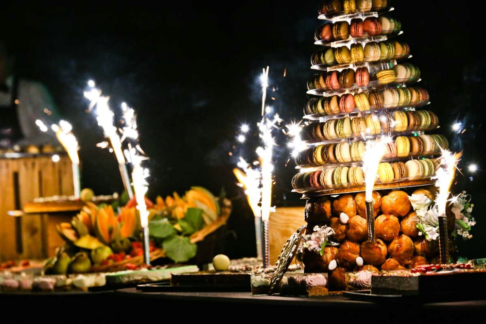 Si la pièce montée reste le dessert le plus traditionnel dans un mariage, il n’est pas rare que d’autres gâteaux soient privilégiés, alternatives plus originales. Nous parlions des macarons qui, multicolores, se prêtent à merveille aux pâtisseries à étages. Le wedding cake est également tendance. Création artistique à part entière, ce dessert de mariage venu des États-Unis se déguste autant avec les yeux qu’avec les papilles. Pour que le repas de mariage ne s’éternise pas à table, vous pouvez aussi choisir de créer un magnifique buffet de pâtisseries qui laissera le choix à vos invités.