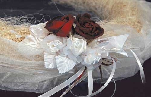 Toujours dans ce style « retour aux sources et aux décors d’antan », des guirlandes de fleurs faites de ficelle naturelle et de papier crépon rouge sont aussi très tendances. Elles peuvent être accrochées au coffre de la voiture pour s’envoler au vent dès qu’elle est en route. Le rouge apporte la passion et la gaieté, qui peut être intégré avec parcimonie dans votre décor, usant de quelques rappels avec des serviettes à carreaux rouge et blanc par exemple, sur un chemin de table en toile de jute ou lin naturel.