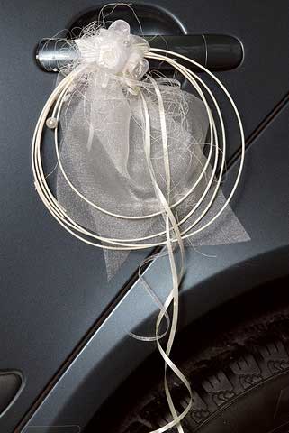 On connait tous les classiques, avec les nœuds de portière et les guirlandes sur le capot avant, mais aussi les guirlandes de ruban à l’arrière de la voiture. Faits de satin, de tulle ou d’organza blanc, crème ou rouge, mélange de nœuds, de fleurs et de perles, ils magnifieront votre véhicule avec faste, selon les couleurs de votre décoration de salle de mariage ou de la robe de la mariée par exemple.