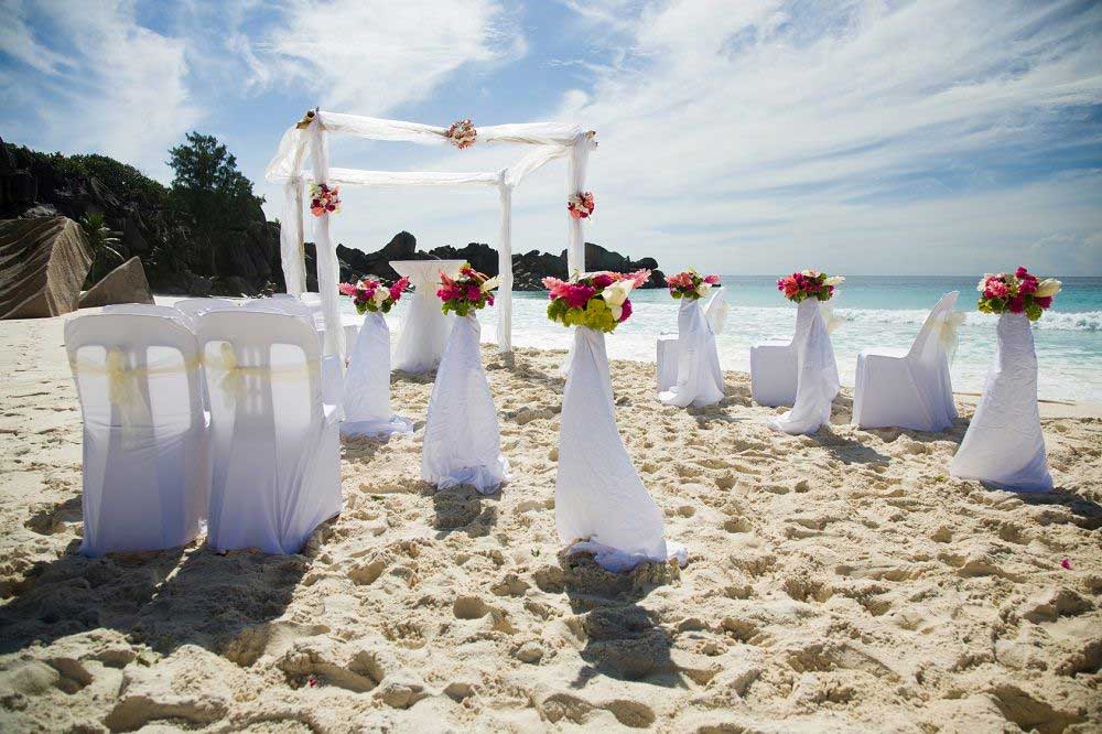 Qui n’a pas rêvé de s’unir sur une jolie plage de sable blanc, avec les vagues qui viennent lécher vos pieds nus, un soleil au coucher qui caresse votre peau de ses doux rayons, tout de rouge vêtu sur une mer d’huile, calme et tranquille. De cette splendide carte postale peut naître une réelle envie de se marier dans un cadre empreint de liberté et de romantisme, à concrétiser en petit comité ou en grande pompe, selon le lieu de la cérémonie de mariage choisi et votre budget.