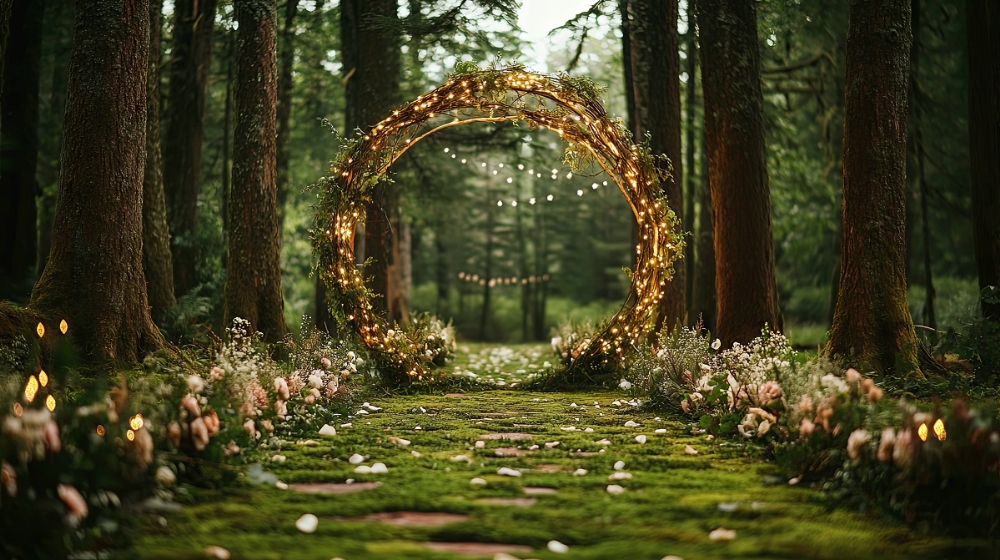 Transformez votre cérémonie en un moment envoûtant : un chemin bordé de pétales de fleurs, des musiciens jouant des airs doux et mélodieux, et des vœux échangés sous une arche florale enchanteresse. Vous pouvez même ajouter des rituels symboliques, comme l’allumage d’une bougie commune ou la libération de papillons.
