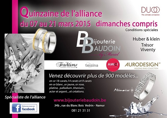 Du 7 au 21 mars 2015, ne rater pas la quizaine de l'alliance à la bijouterie Baudoin.
