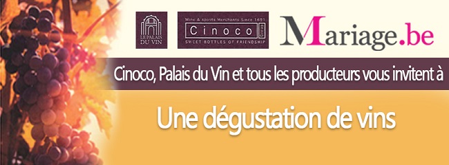 Cinoco et Le Palais du Vin, en partenariat avec Mariage.be, invitent les futurs mariés à une dégustation gratuite de vins et sans engagement afin de certainement découvrir les vins qui charmeront le palais de vos invités. Plus de 50 vignerons seront présents et vous donneront également l’astuce qu’il vous fallait afin de choisir le vin correspondant au mieux à votre repas. Pour cela, inscrivez-vous via le lien suivant et choisissez Doms Paul dans le rubrique « Votre contact »