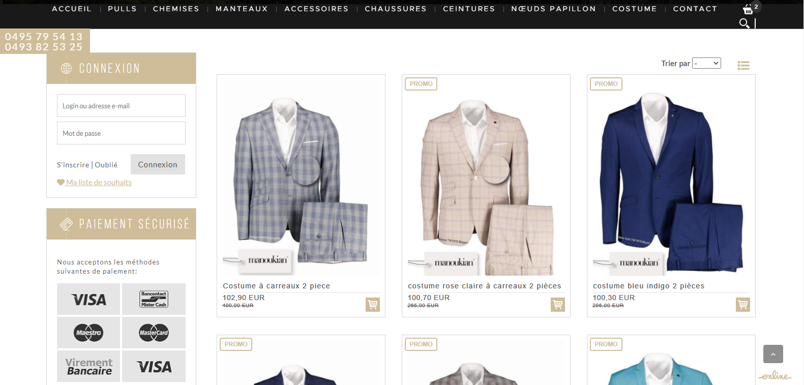 Maison Française habille les hommes avec raffinement depuis 1939. Tous les hommes. Pour toutes les occasions. Notre boutique de prêt-à-porter à Liège vous réserve un accueil personnalisé et vous aide à trouver la tenue qui flattera votre silhouette tout en respectant votre personnalité. Spécialisés en costumes grande taille, nous vous serons toujours de bon conseil et à l’écoute. Costume trois pièces, queue-de-pie, jaquette, col roulé...