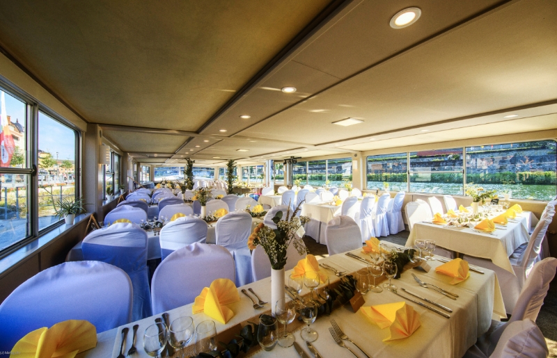 Vin d’honneur sur le pont, repas dans la salle principale avec vue sur la vallée et soirée dansante 100% flottante,… Le plus beau jour de votre vie marquera les esprits !