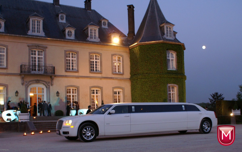 - STRETCHED LIMOUSINE : Chrysler Limousine "8m60" 8 pl. (blanche) + chauffeur ;