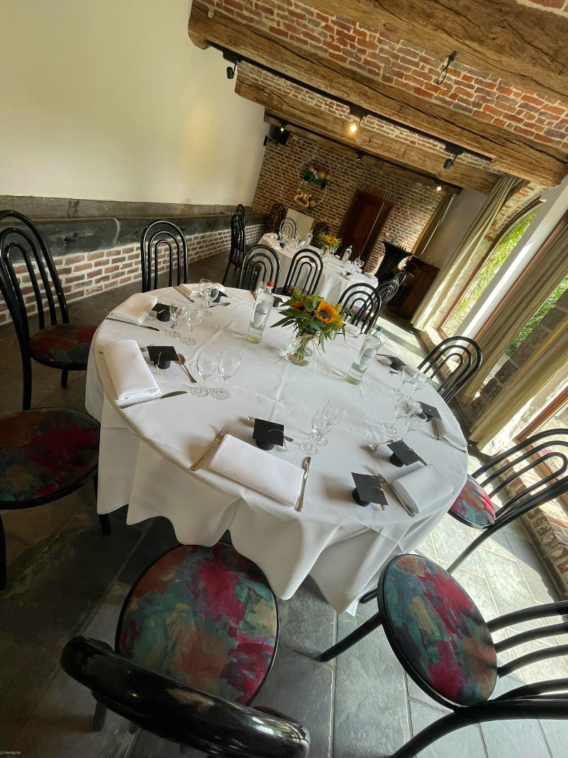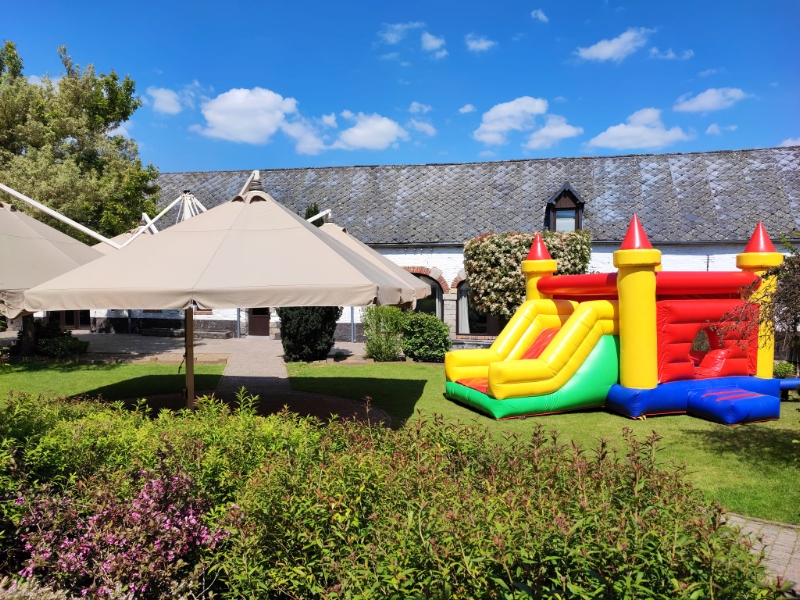 Nos 5 magnifiques salles de superficies différentes sont disponibles à la location et s’adaptent parfaitement au nombre de vos convives. La vaste cour verdoyante et fleurie est très conviviale dès que pointent les premiers rayons de soleil. Elle est idéale pour vos cocktails et vos réceptions. Vous pourrez y admirer la tour de la ferme qui donne une atmosphère de château à l’ensemble du bâtiment.