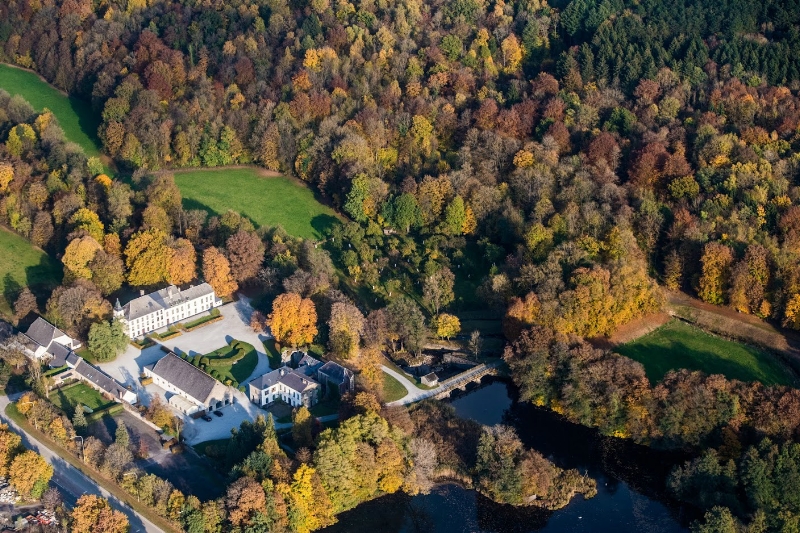 Depuis 2005, la salle des carrosses a été entièrement rénovée et peut ainsi accueillir tous vos évènements. Ce vaste espace de 400 m², entièrement voûté est modulable à souhait et peut accueillir aisément jusqu’à 250 personnes assises. Le parc est accessible et vous pourrez ainsi déambuler tantôt dans le petit jardin privatif ou passer le pont qui enjambe l’Eau Noire et vous enfoncer dans les bois. Cette vaste propriété de 40ha, au charme particulier est le théâtre idéal pour un mariage mais aussi un terrain de jeux formidable pour les journées d’entreprises.
