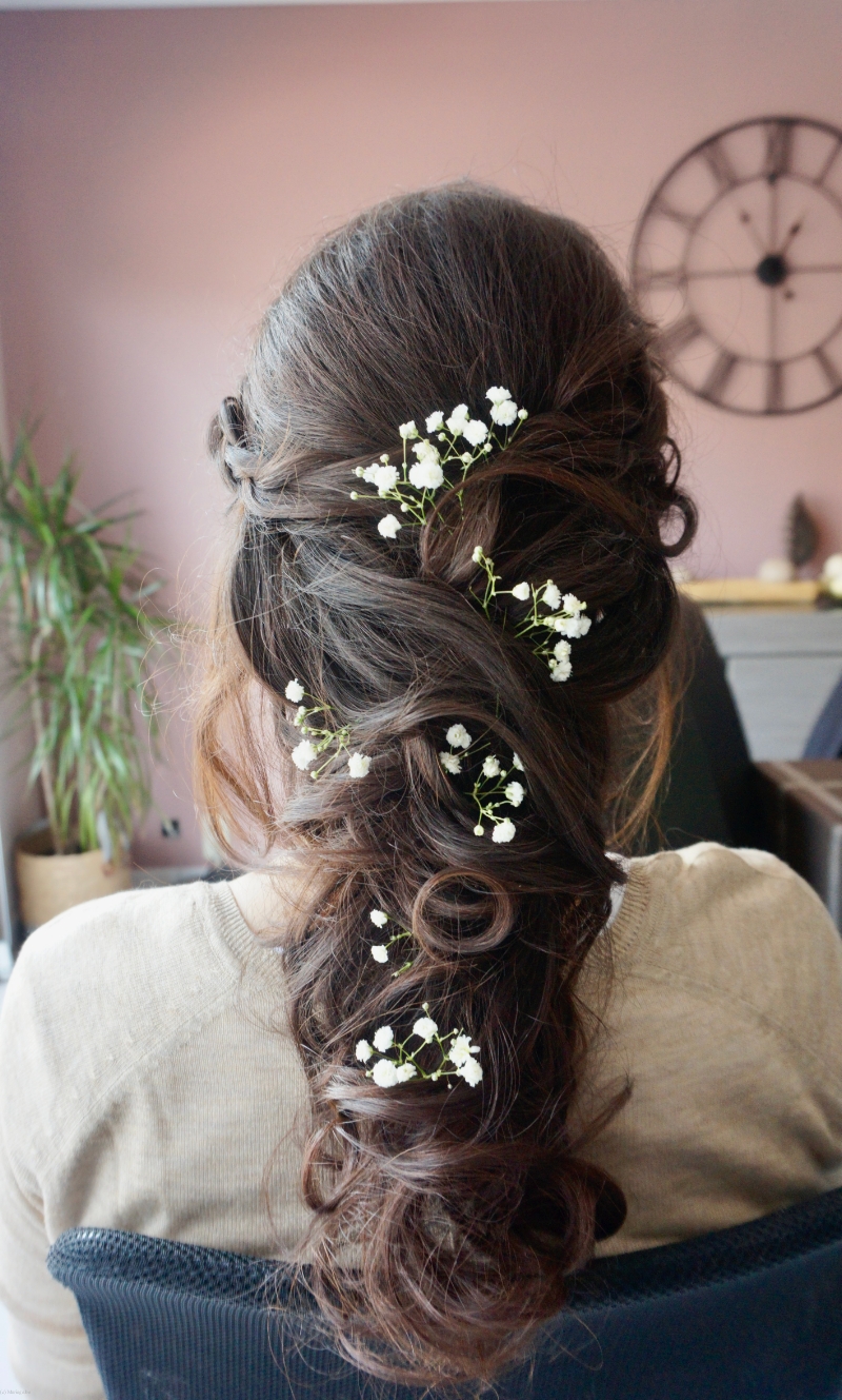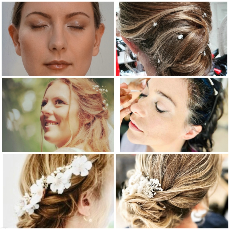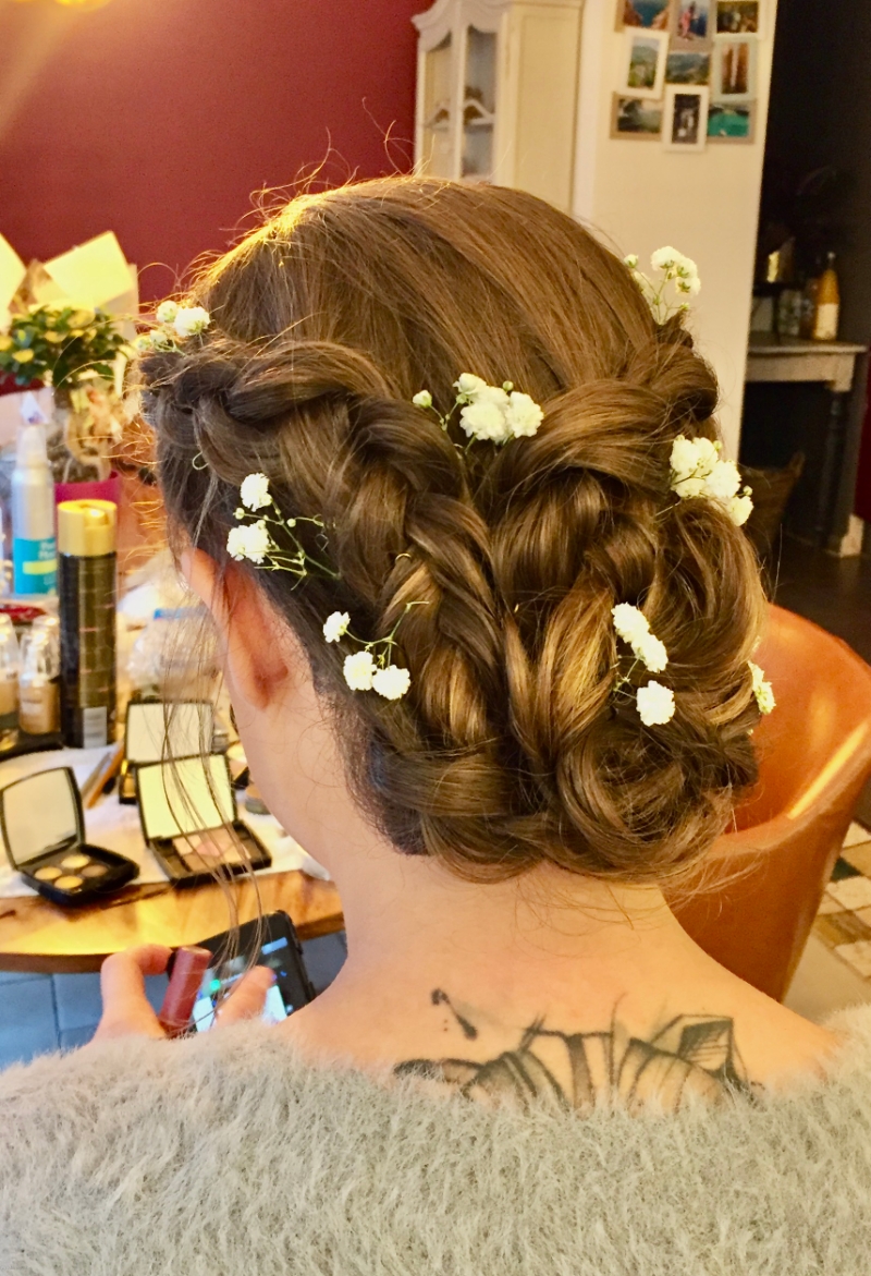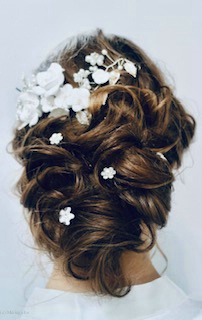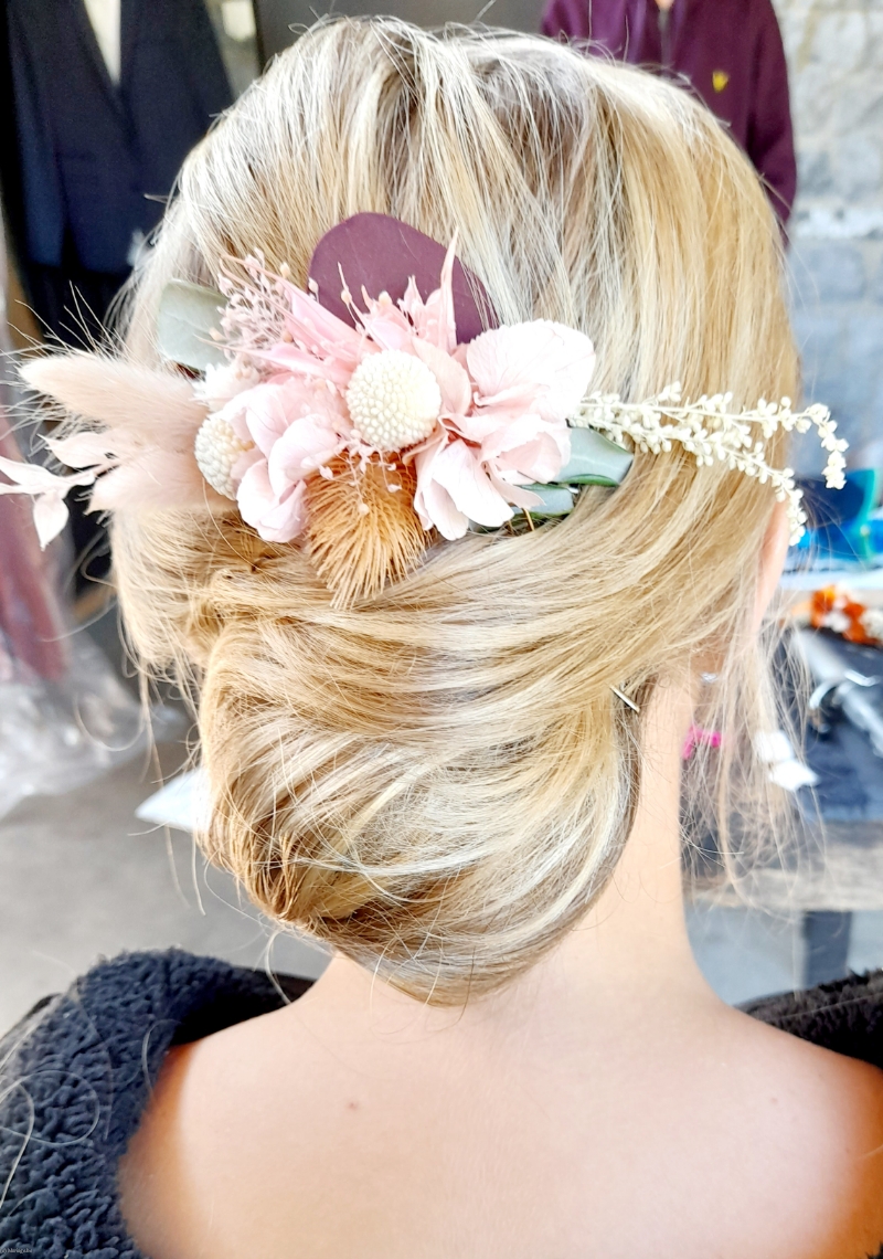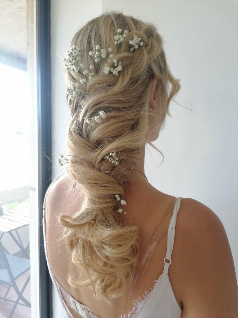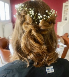 Pour les coiffures au gré de votre style un beau chignon classique, un coiffé décoiffé bohème, ou une coiffure champêtre agrémentée de fleurs .