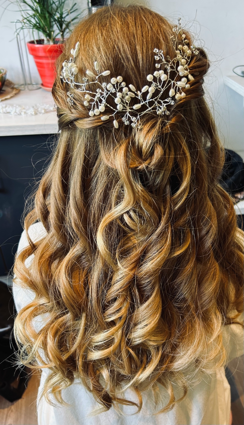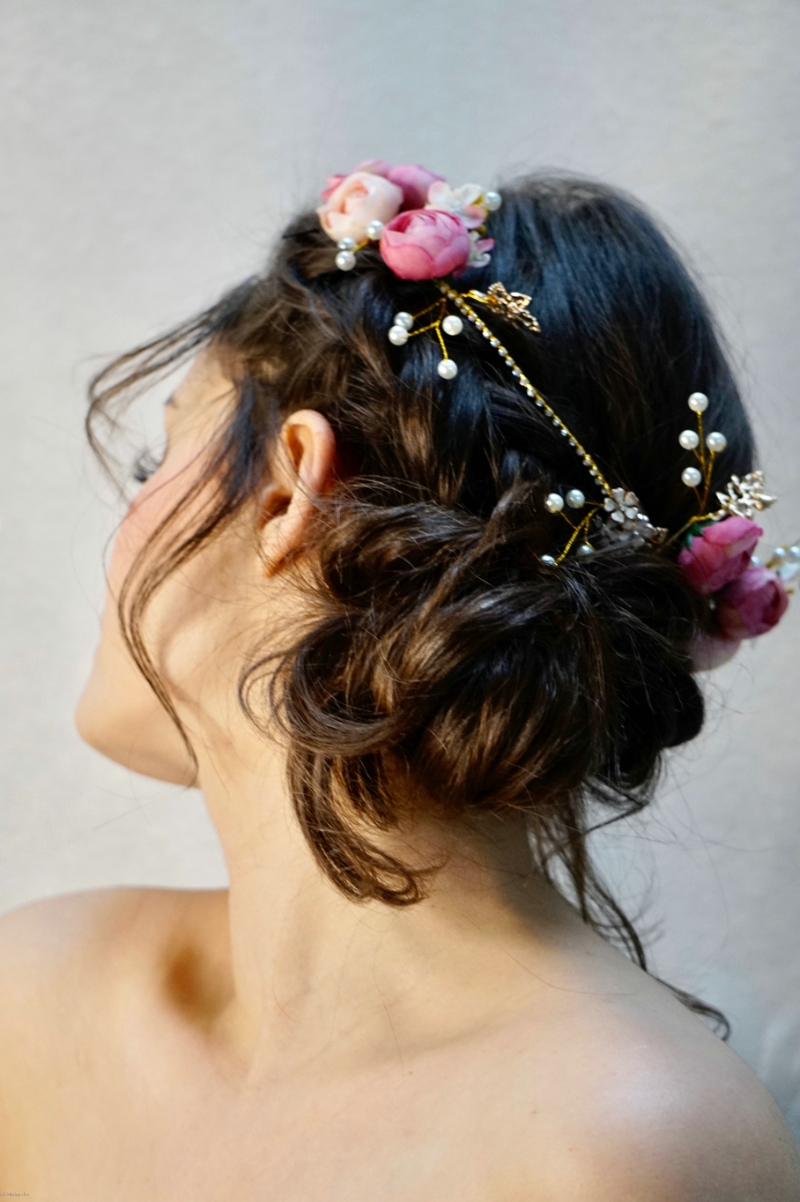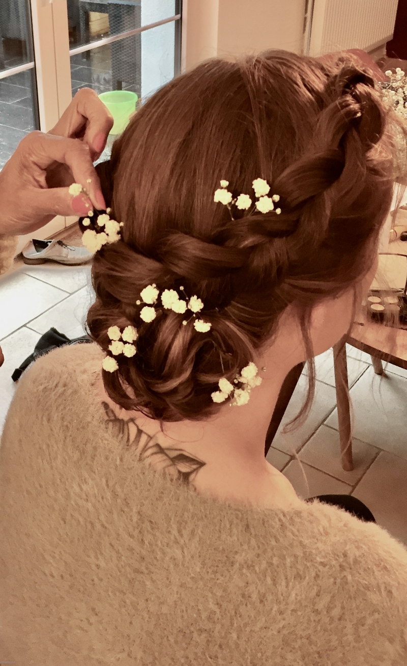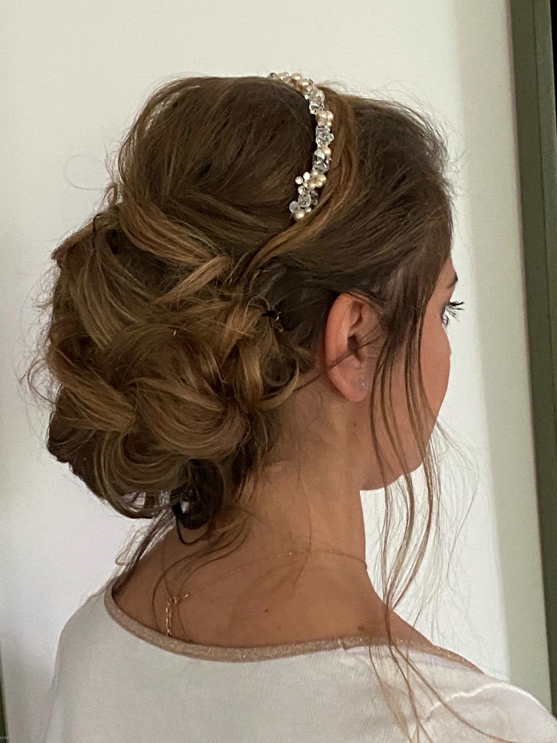 Pour les coiffures au gré de votre style un beau chignon classique, un coiffé décoiffé bohème, ou une coiffure champêtre agrémentée de fleurs .