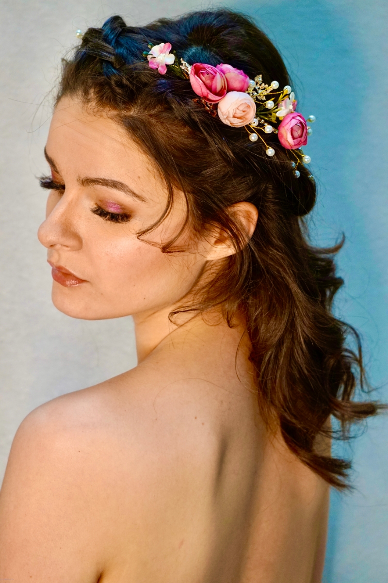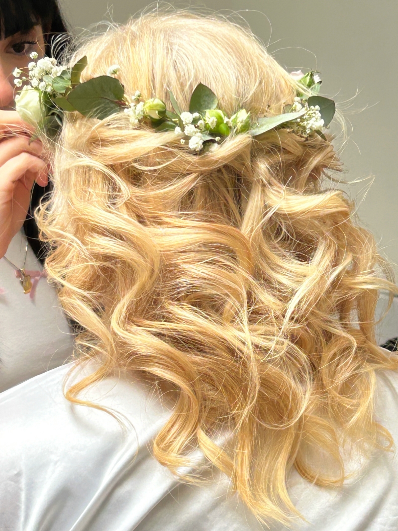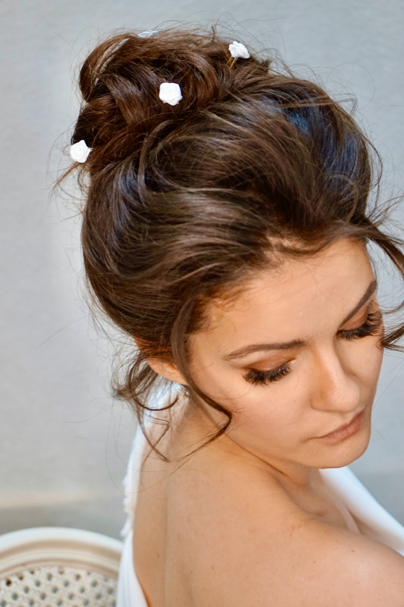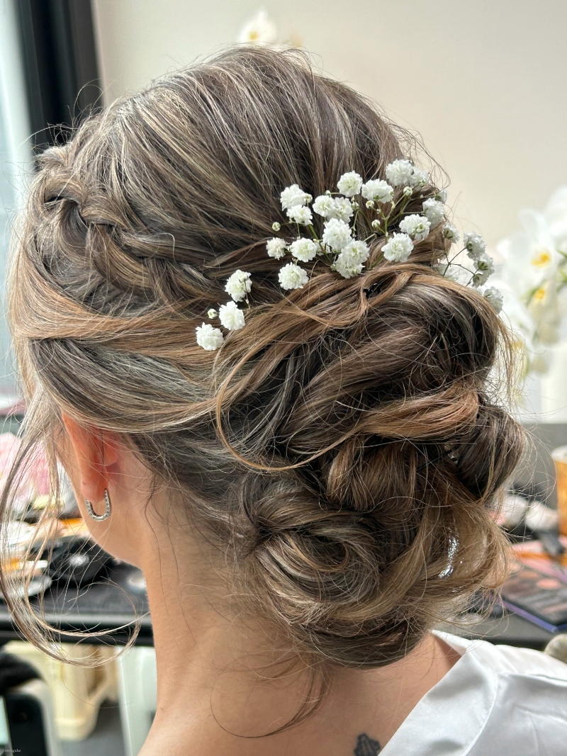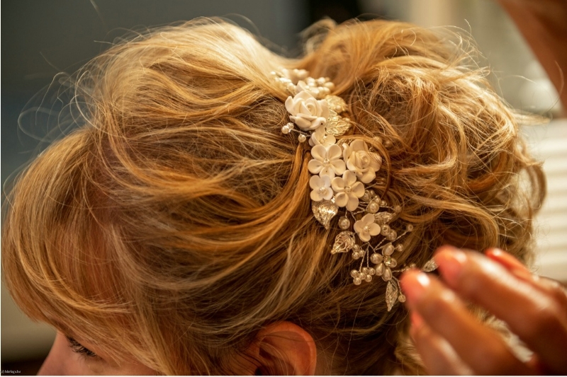 Pour les coiffures au gré de votre style un beau chignon classique, un coiffé décoiffé bohème, ou une coiffure champêtre agrémentée de fleurs .