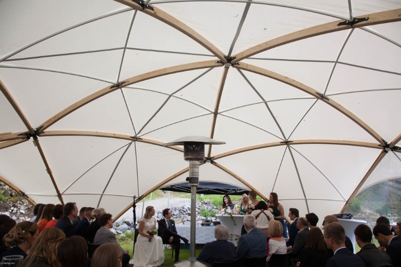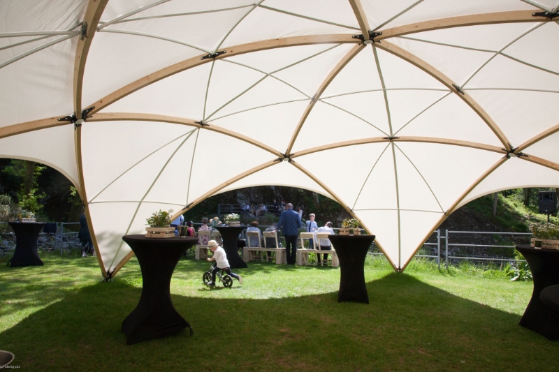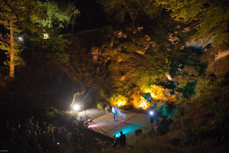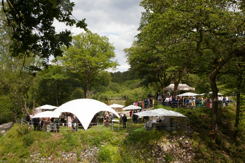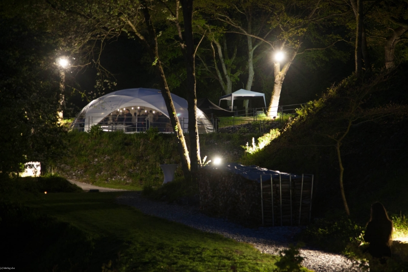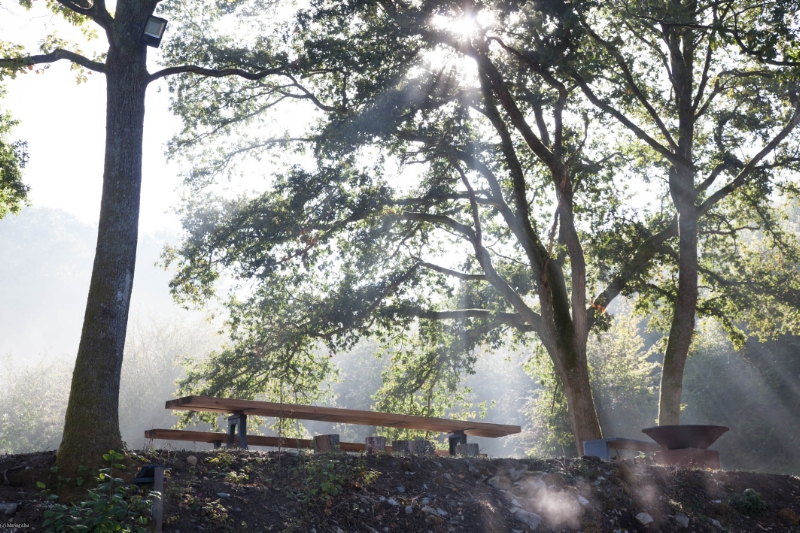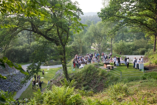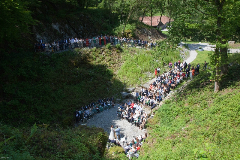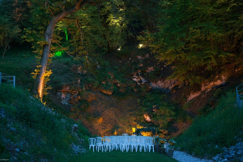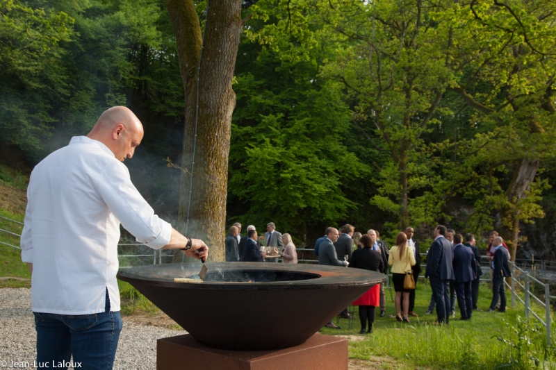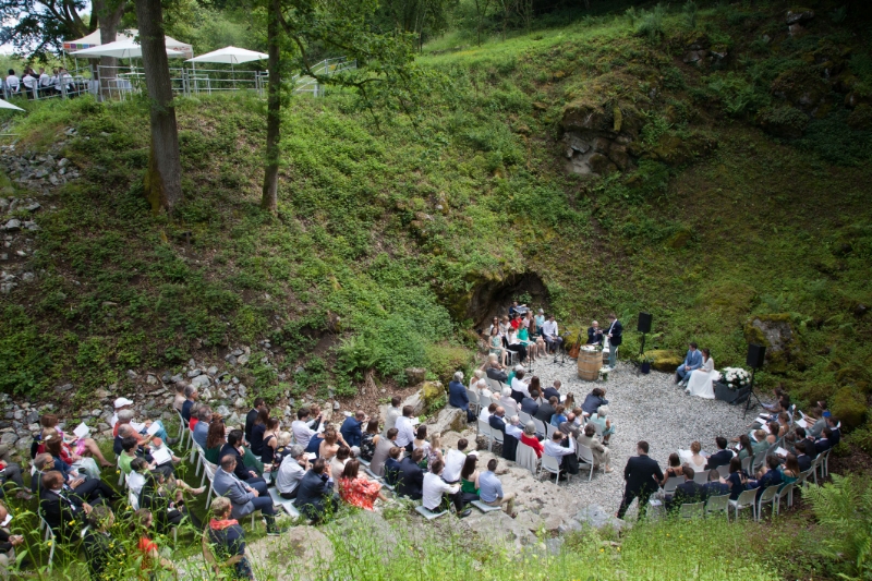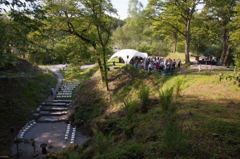 Dans la carrière arborée, différents niveaux de pelouses entourent un amphithéâtre naturel, endroit rêvé pour l'échange des alliances. Surplombant le site, une immense plancha OFYR pour les apéros. Ambiance magique de jour comme de nuit.