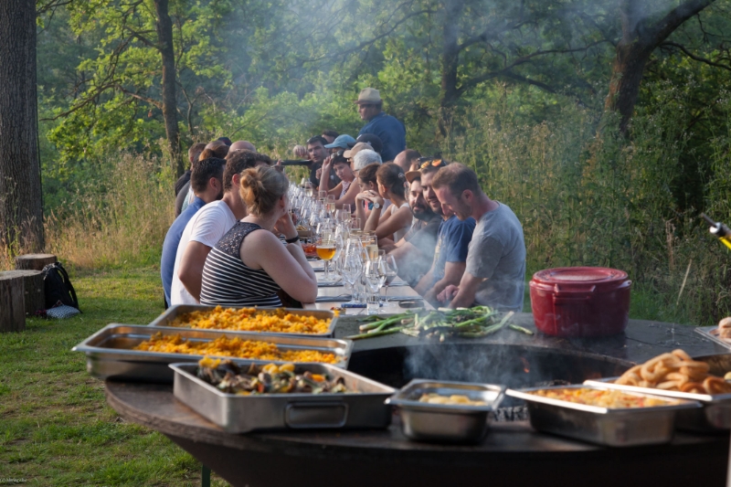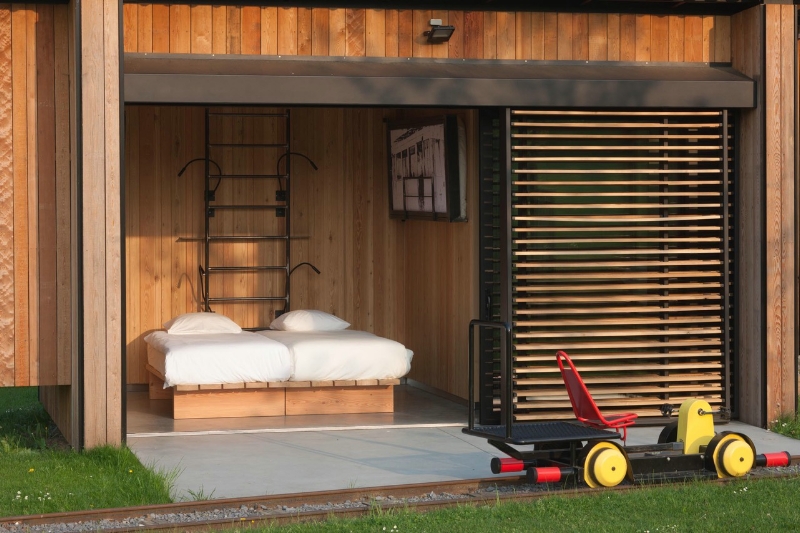 Pour l'hébergement, deux gites design: Les Duves (2-4p), dans les ateliers du moulin et La Station (10-12p), petite gare au milieu des champs dont le jardin est traversé par des draisines et surplombé par un four à pizzas...de quoi prolonger la fête en famille et profiter du sauna.