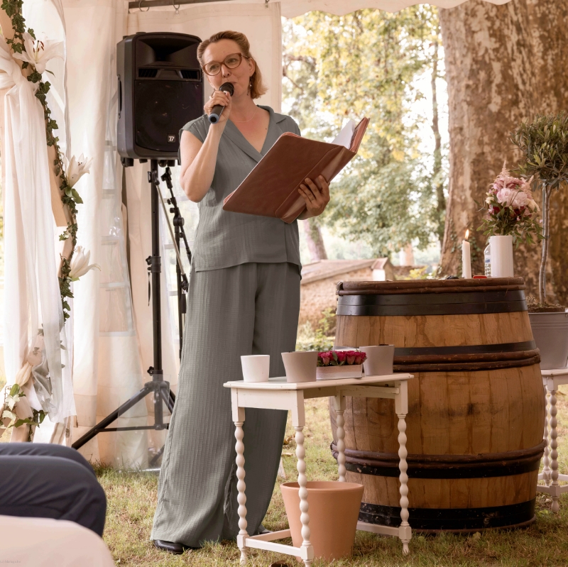 D’origine allemande et installée en Belgique depuis plus de 20 ans, j’ai la chance d’officier des cérémonies en plusieurs langues :