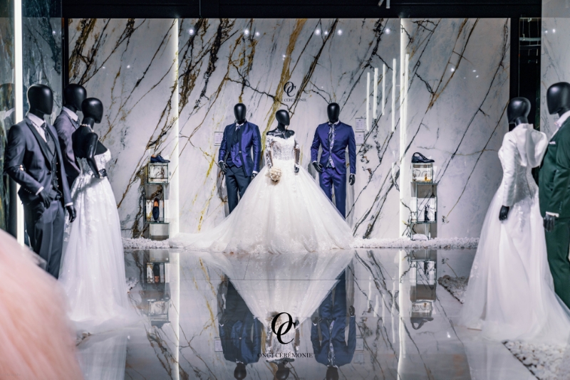 plus de 2000 costumes de mariés et cérémonies qui sont exposés dans un showroom de 1500m2.