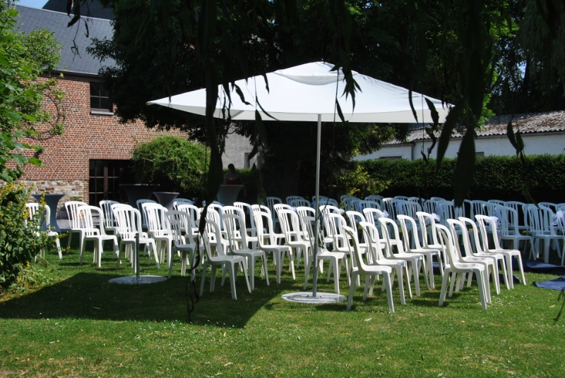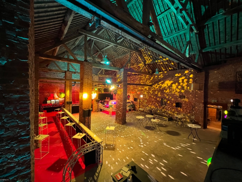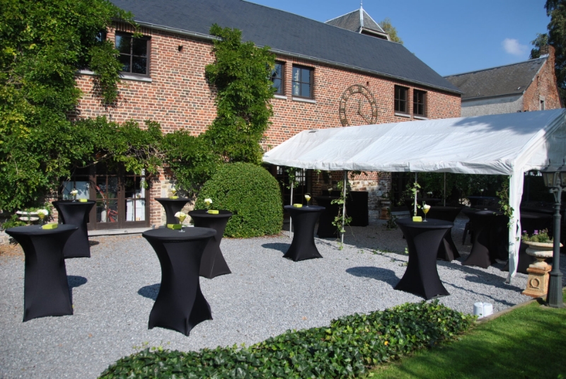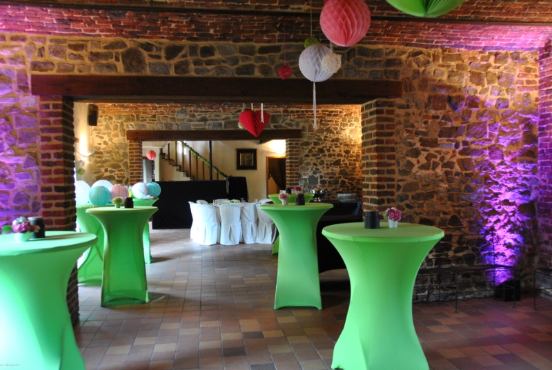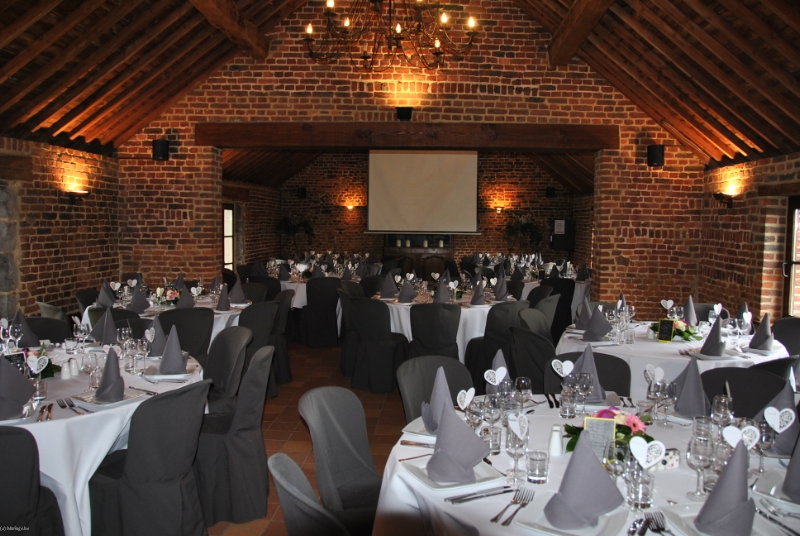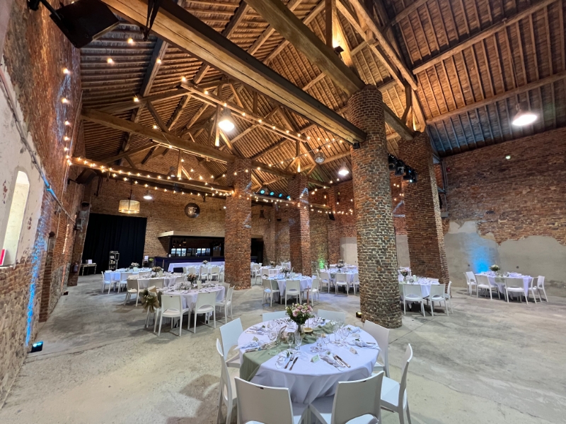 INFRASTRUCTURES & SERVICES > Salle au rez-de-chaussée et salle à l’étage. > Grande cuisine professionnelle équipée avec fourneaux, congélateur, frigos, chambre froide... > Deux jardins indépendants pour cocktail ou animation pour enfants. > Aire de jeux pour châteaux gonflables. > Vaste parking éclairé : jusqu’à 200 voitures. > Six hectares de prairies et parc ombragé. > Eclairage dans toute la propriété, 25.000 watts de puissance... > Situation idéale au centre de la Belgique, à la croisée des autoroutes. > Accès aisé, à 5 km des autoroutes E411 et E42. > Hébergement au coeur du Domaine ou à proximité : 0474/51.02.51. > Possibilité d’augmenter la capacité de réception par des tonnelles, chapiteaux ou des tentes. > La célébration religieuse de votre mariage peut s’organiser dans la propriété (mariage laïque, ou dit ‘à l’américaine’), en plein air, dans la salle ou dans The grange.